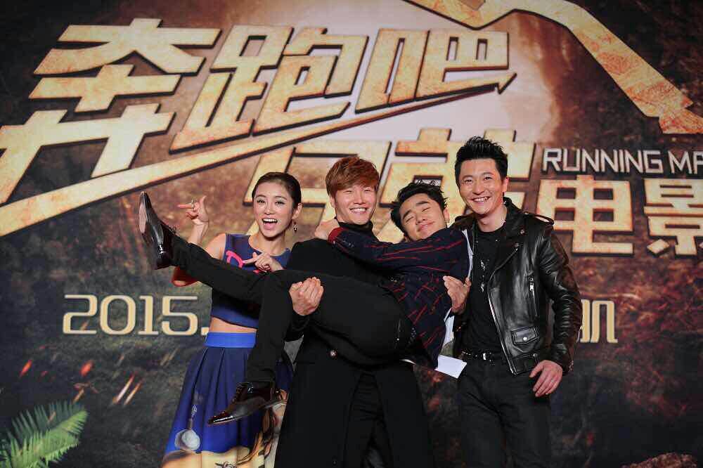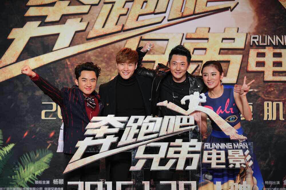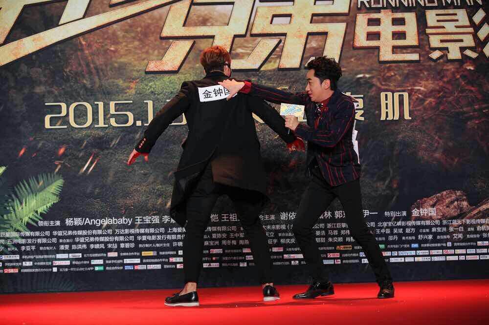 大電影“奔跑吧,兄弟”宣傳活動(dòng)現(xiàn)場(chǎng),金鐘國(guó)和王祖藍(lán)。(北京一路領(lǐng)先汽車租賃公司)圖