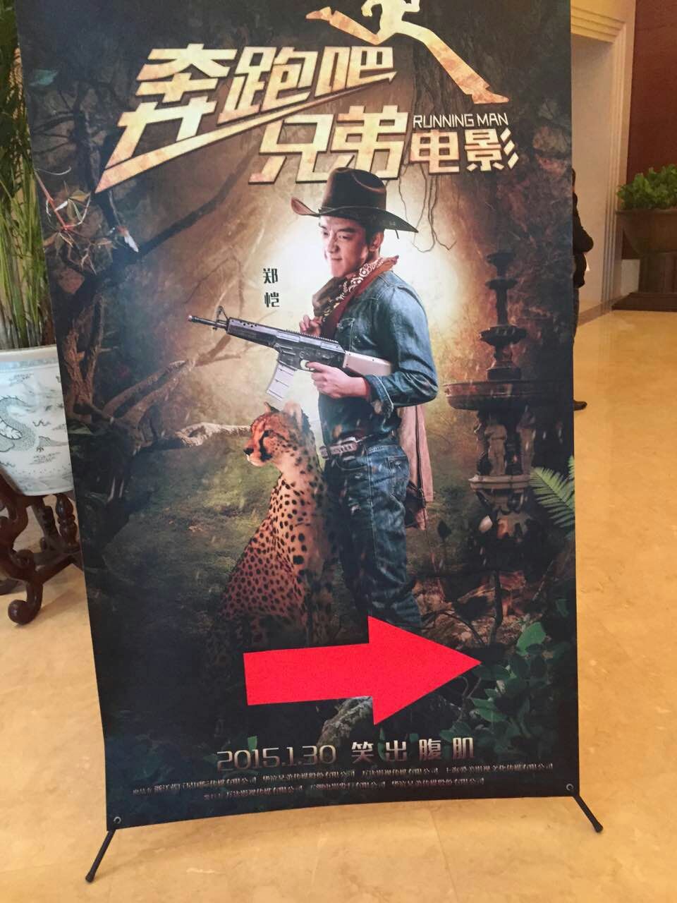 大電影“奔跑吧,兄弟”宣傳活動(dòng)現(xiàn)場(chǎng),鄭凱海報(bào)。(北京一路領(lǐng)先汽車租賃公司)圖